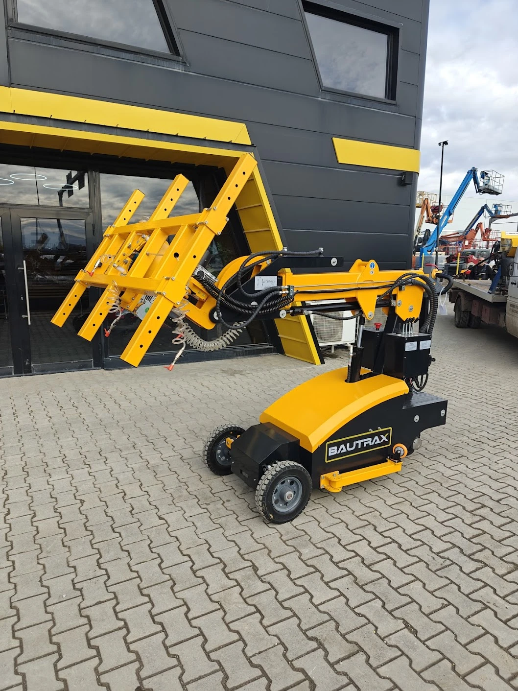 Монтажният робот Bautrax VROB600 е предназначен за безопасно и ефективно повдигане и позициониране на стъклени панели и големи плоски материали на строителни обекти. Предлага висока точност и стабилност при работа.